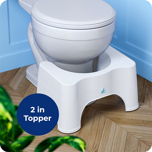 Add the included 2” topper to adjust the stool height from 7” to 9” high. Our Adjustable 2.0 is perfect for bathrooms shared by people of every height and age. Children and advanced squatters may prefer the taller height while others will want the standard 7” toilet stool height. Try it both ways, then add or remove the topper to best suit your needs.